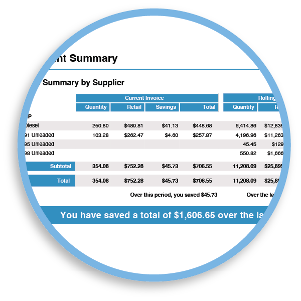 - Transactions: fuel supplier charges (fuel and any shop items billed through the fuel supplier)